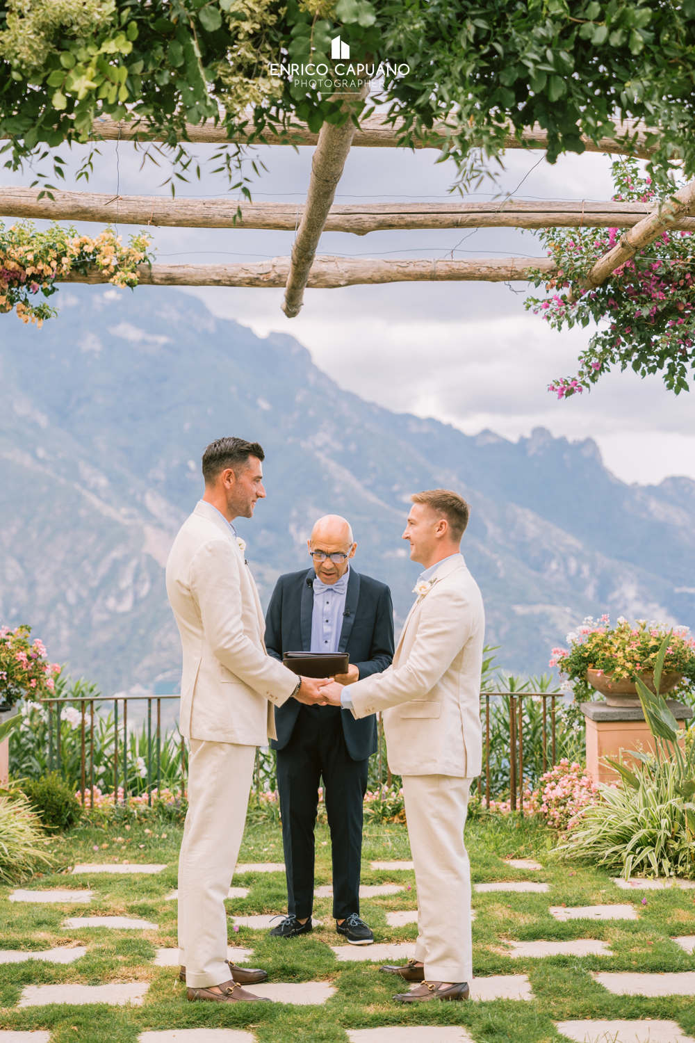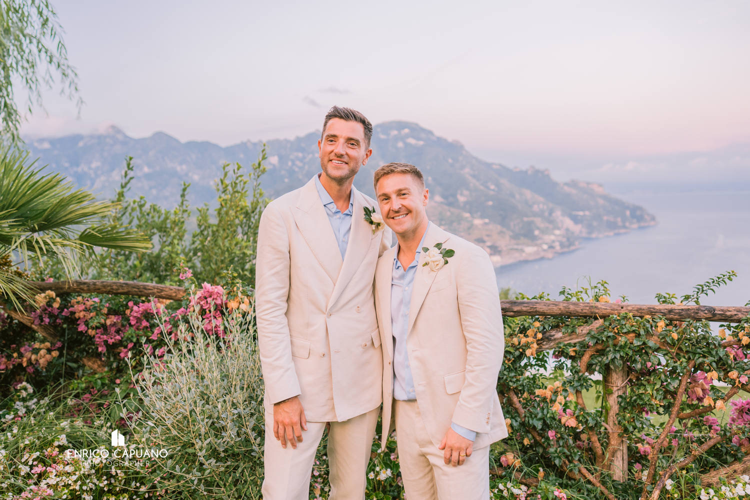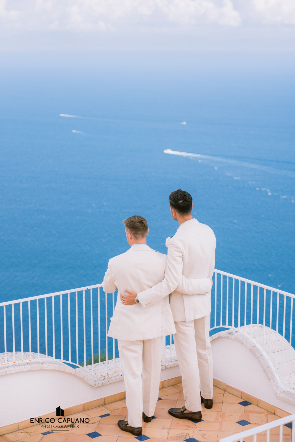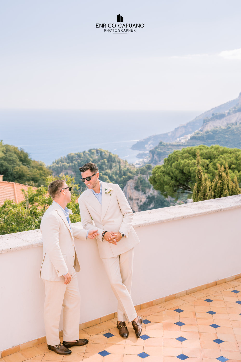 This is a photographic story by Enrico Capuano, who captured the beauty and emotion of Stuart and Tom’s same-sex wedding. A wonderful couple, Stuart and Tom chose the stunning Villa Eva in Ravello to celebrate their love, surrounded by the timeless charm and breathtaking atmosphere of this enchanting destination. Through Enrico Capuano’s lens, their wedding day unfolds as a visual narrative filled with authenticity, joy, and the magic of Ravello