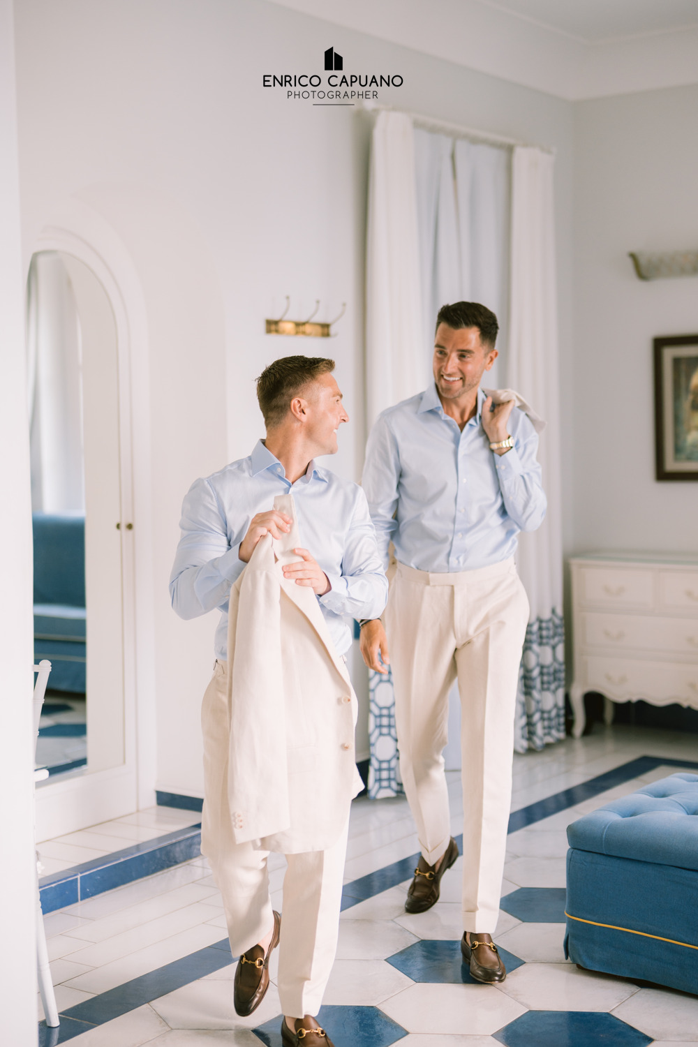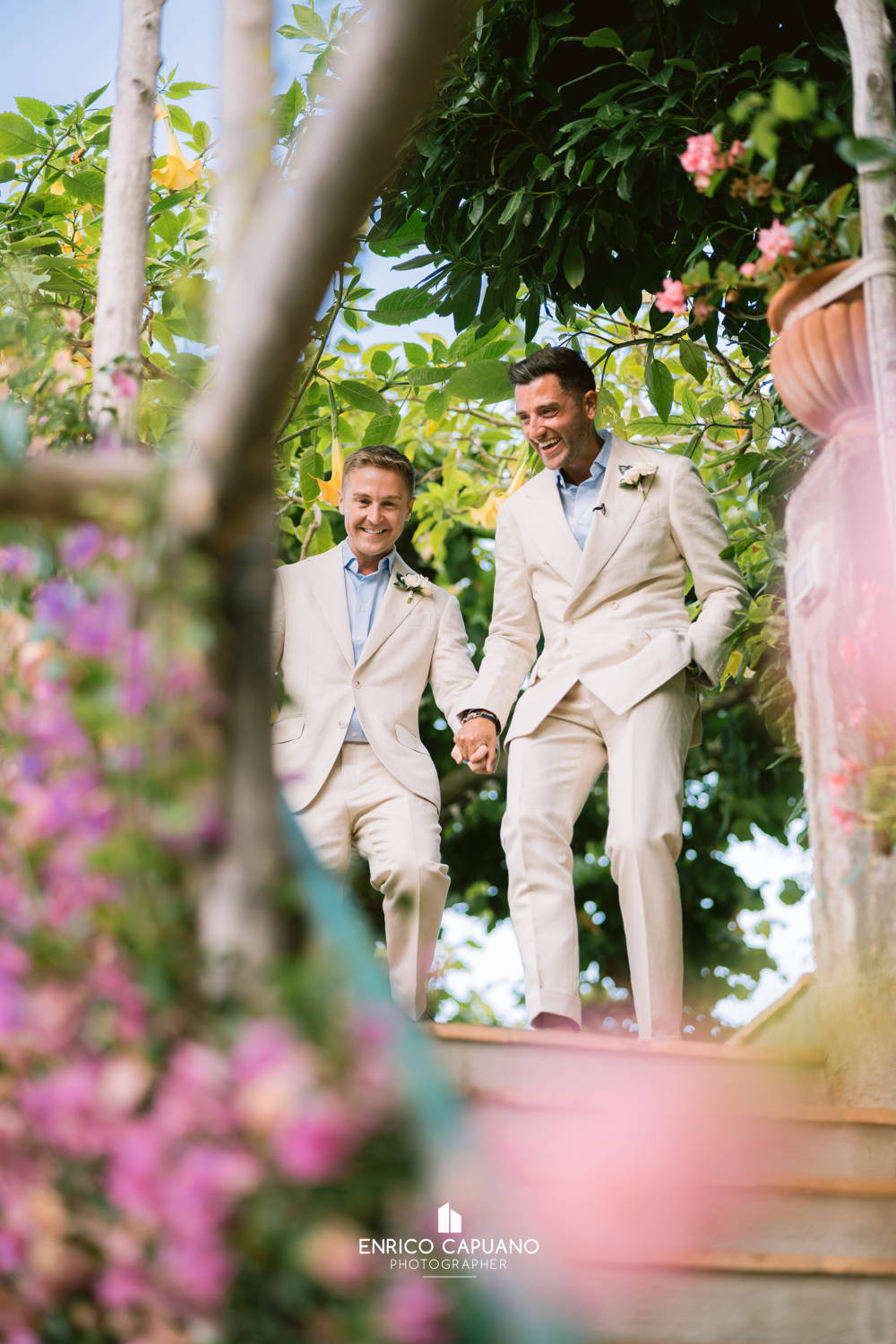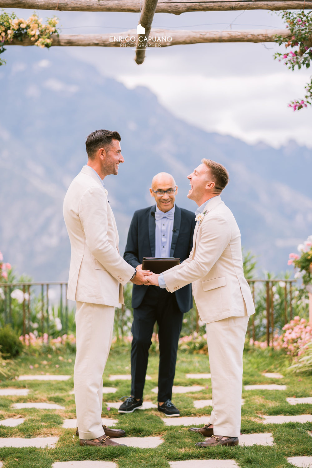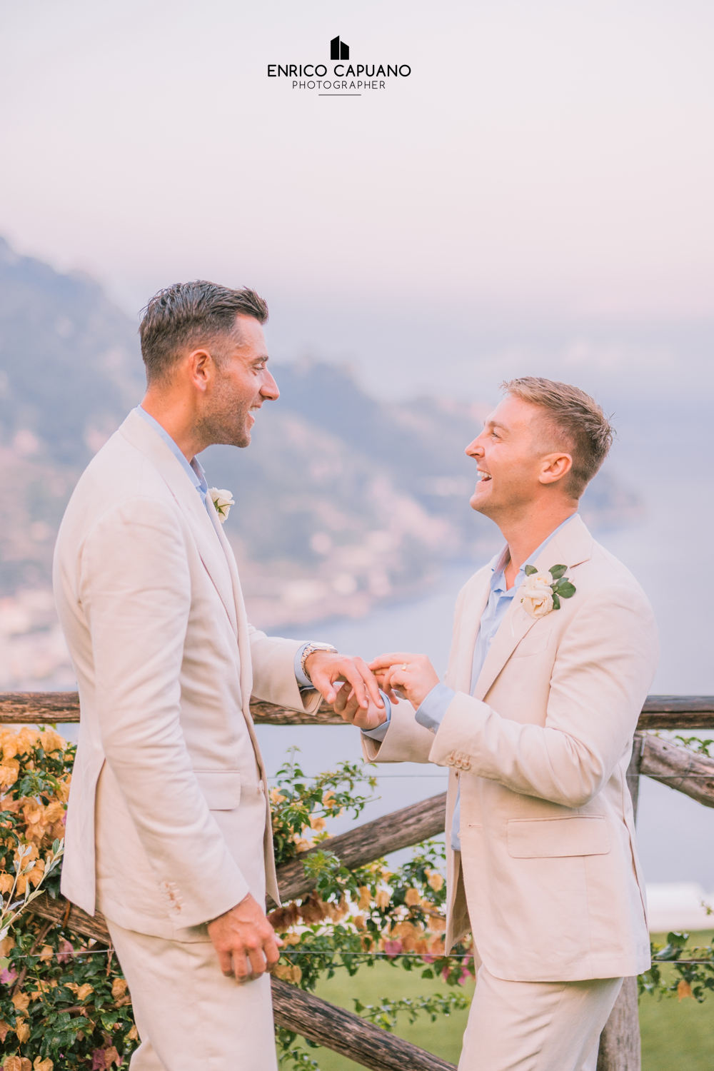 This is a photographic story by Enrico Capuano, who captured the beauty and emotion of Stuart and Tom’s same-sex wedding. A wonderful couple, Stuart and Tom chose the stunning Villa Eva in Ravello to celebrate their love, surrounded by the timeless charm and breathtaking atmosphere of this enchanting destination. Through Enrico Capuano’s lens, their wedding day unfolds as a visual narrative filled with authenticity, joy, and the magic of Ravello